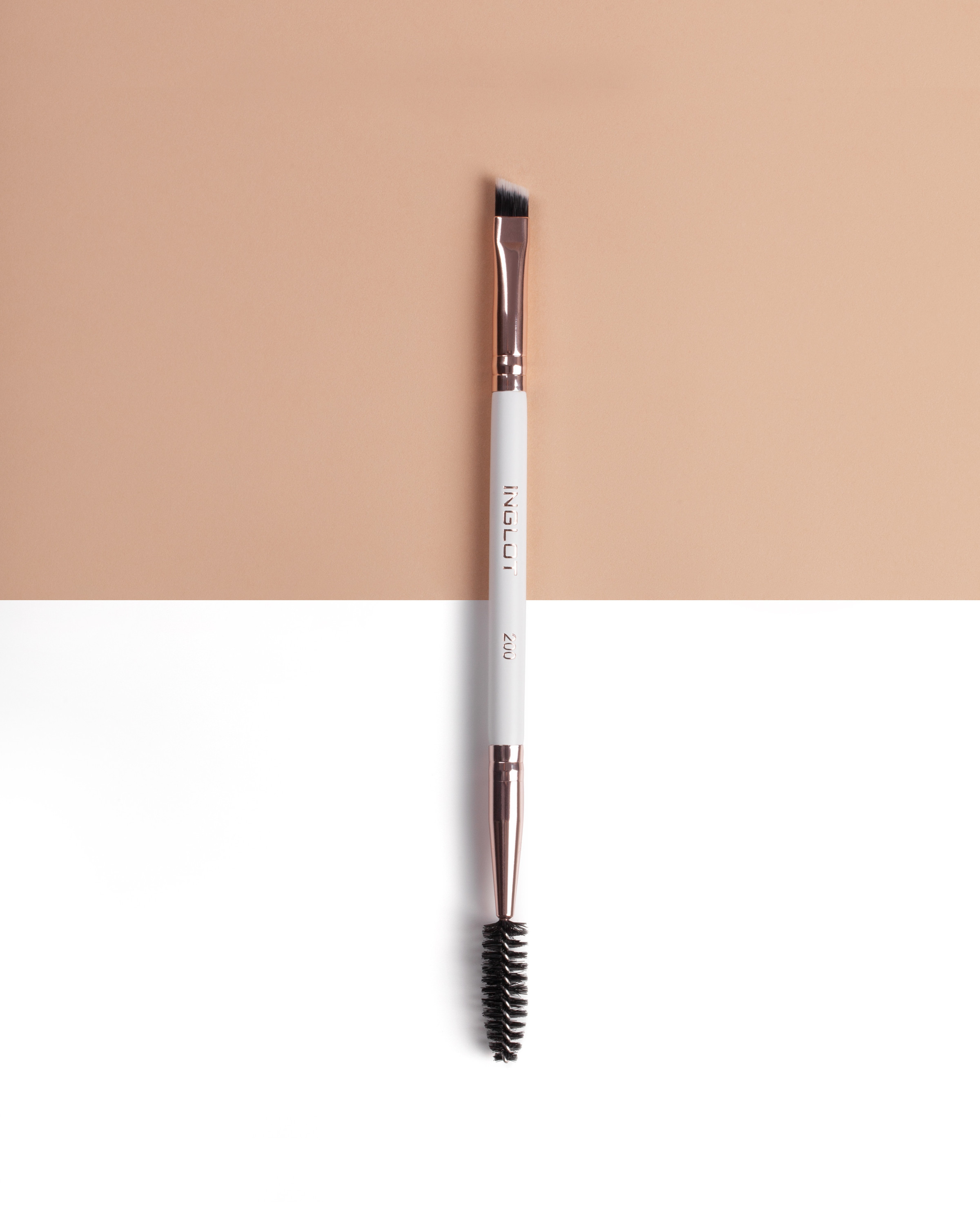 A 2in1 brush that is perfect for performing makeup at home and during travelling. It is perfect for brow makeup. With the diagonal brush you can give the brows shape. The other side of this brush allows easy blending of the cosmetics and brushing hair.