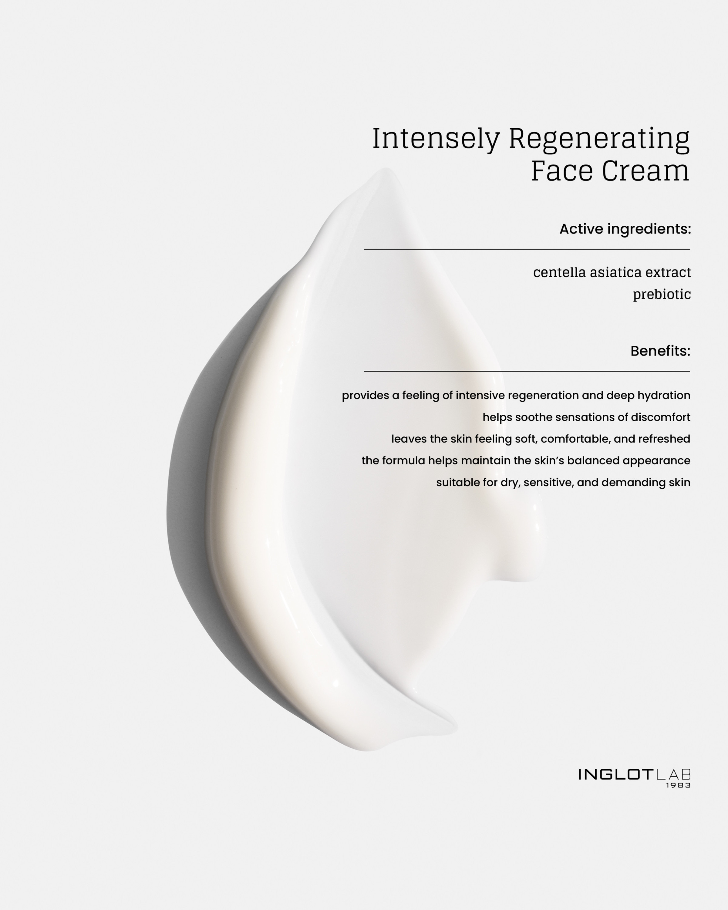 A carefully selected blend of active ingredients—including kombucha ferment, squalane, sweet almond oil, oat oil, and botanical extracts of Centella Asiatica and basil—provides hydration, soothes irritation, and strengthens the skin’s natural protective barrier. It comprehensively supports the balance of the skin microbiome and effectively reduces transepidermal water loss (TEWL), delivering softness, comfort, and relief.