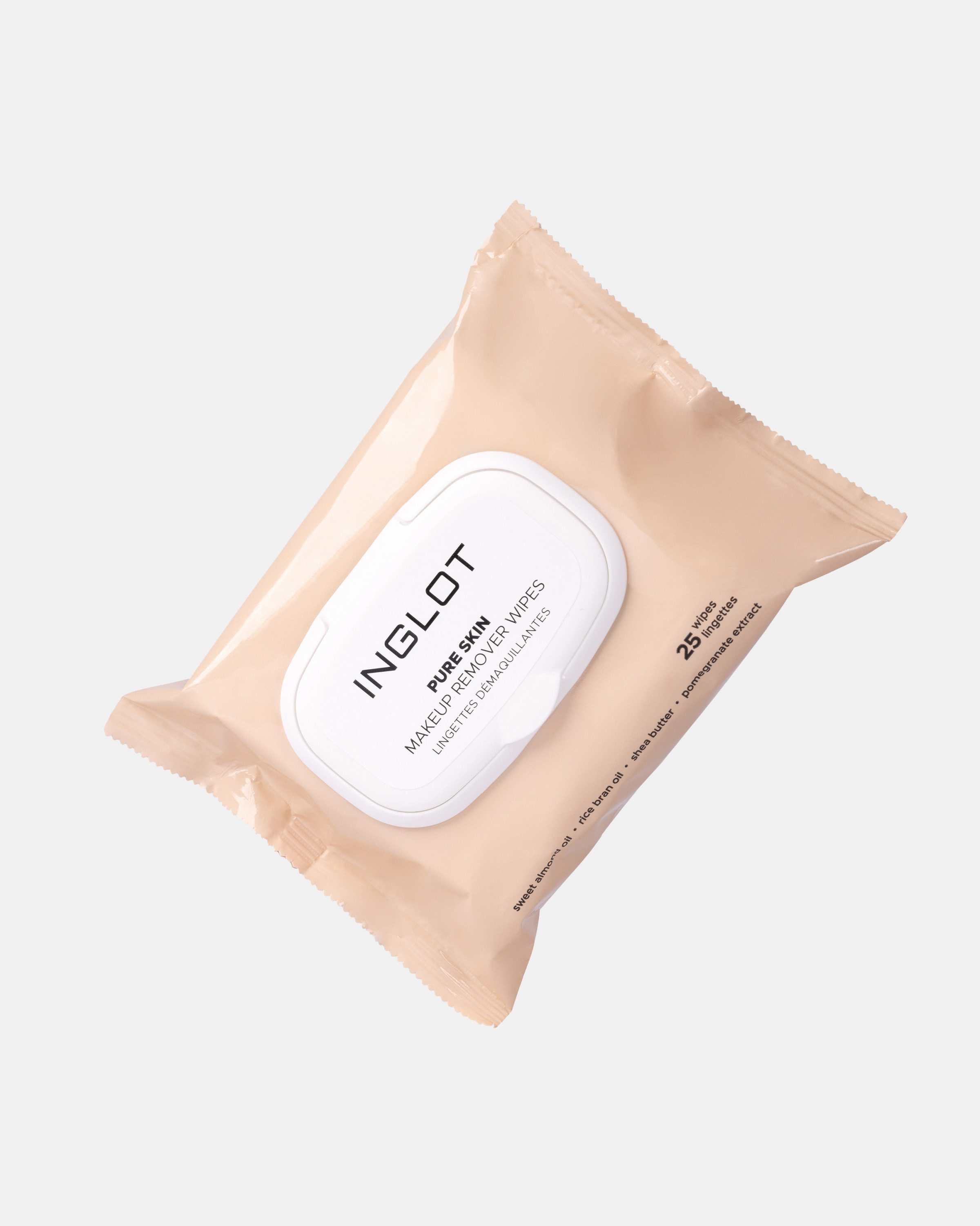 Thoroughly clean skin with Pure Skin Makeup Remover Wipes. The package contains 25 wipes that will gently remove even waterproof makeup from the face, eyes and lips, while providing subtle skin care. The wipes combine makeup removal with care, thanks to carefully selected active ingredients. Enriched with almond oil, rice oil, shea butter and pomegranate water, they moisturize and give a soothing feeling. The pleasant formula does not leave a sticky or greasy film on the skin. The wipes are safe for sensitive eyes, without irritation or discomfort. Thanks to the toning properties, your skin will become refreshed, and the pleasant fragrance will make makeup removal a pleasant routine. The wipes are biodegradable, making them environmentally friendly.